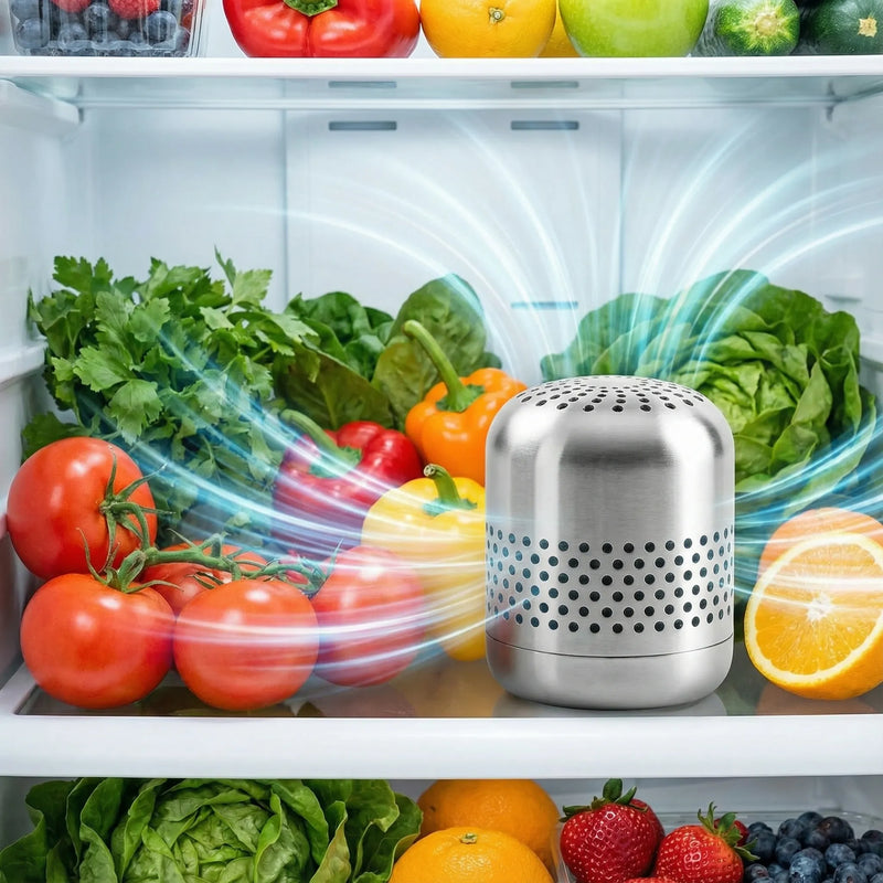 CoolerFresh uses nano-catalytic technology to break apart odor molecules at the source. Unlike baking soda that fills up in two weeks and stops working, CoolerFresh destroys bacteria, mold spores, and volatile compounds continuously. The same technology trusted in commercial food warehouses now fits in your fridge. No saturation. No replacement. Just fresh air, every time you open the door.
